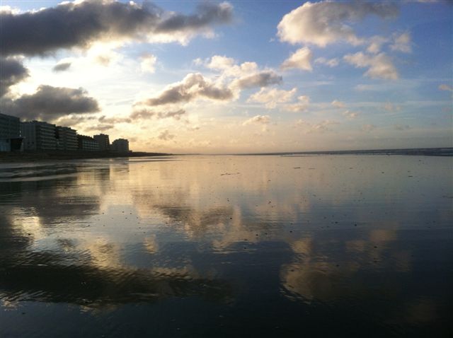 Plage vide. Pas étonnant après les tempêtes de la semaine. Un banc de terre, large, humide et lisse comme un gigantesque miroir sur plus de 11 Km.